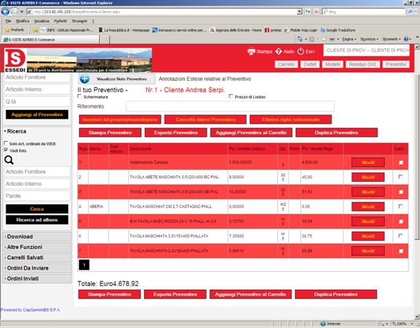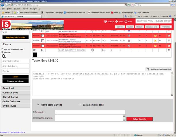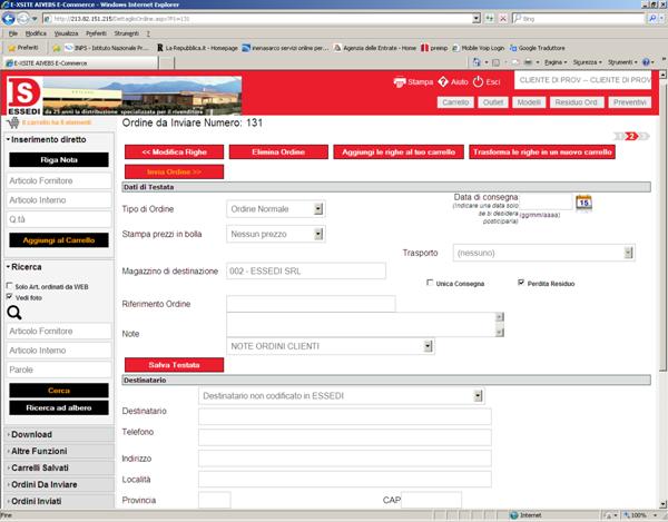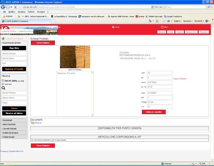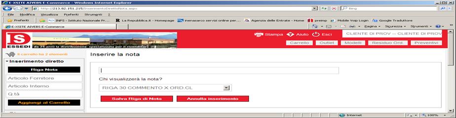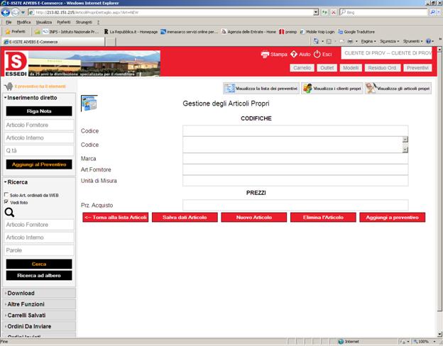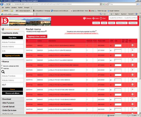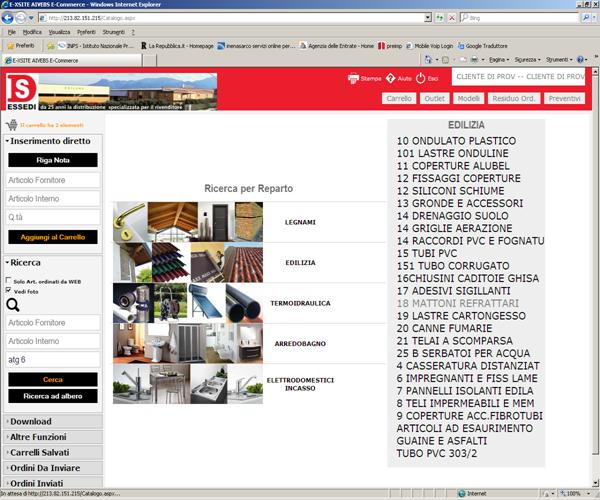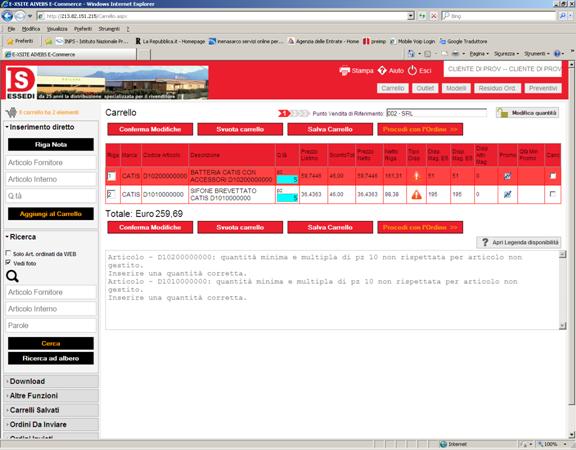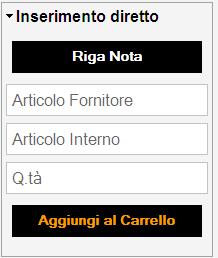 1. Diretta , che vi permette digitando il ns. codice articolo e la quantita di inserire direttamente sul carrello la